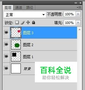 如何 移动图层呢?我举例说明第一张图片是心形在最上面,而第二张图片心形下降了一层,黑色方块来到了第一层,如何移动自己想要移动的图层呢?方法是: 点击并拖住心形的 图层, 移动到黑色方块 图层的下面,也可以点 击并拖着黑色方块 图层移到心形 图层的上面。