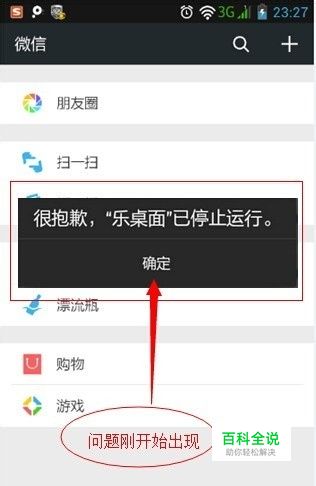 遇到问题: 前几天用手机上网玩微信的时候,用着用着,突然就弹出来提示:很抱歉,“乐桌面”已停止运行。