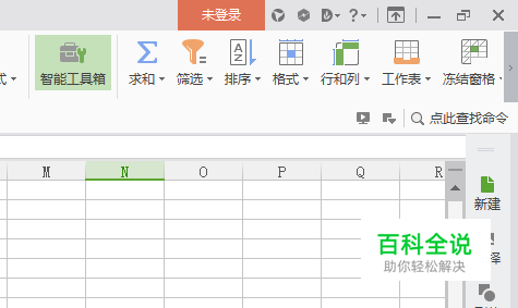 接下来,我们在表格右上位置找到如下箭头所指的图标,我们在这里称之为“开启功能区/隐藏功能区”按钮,她的作用就是显示或隐藏表格工具栏