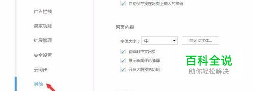 进入设置界面,在左侧的导航菜单中进入【其他】模块