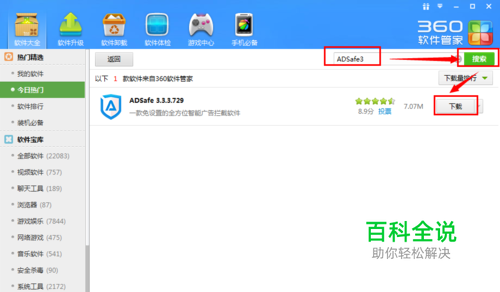 搜索ADSafe3软件,把它下载下来。