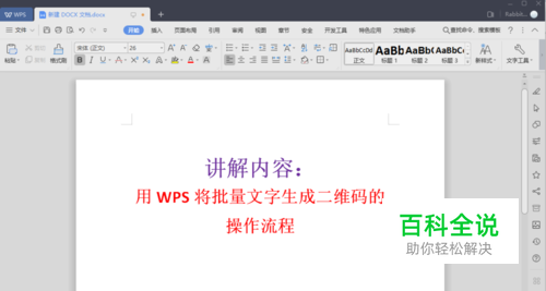 知识信息时代,存贮的手段越来越高级。二维码技术可以将批量文字内容转换成一个简单的二维码储存起来,只要一扫码,就能读取具体的文本。WPS就有这个功能,下面就介绍一下操作过程。
