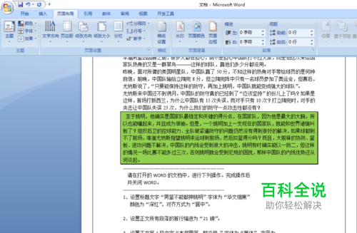 设置正文第3段“尤纳斯来...攻击性都没有?”的边框为“阴影”,线型为 “实线”,宽度为“1 磅”,应作用于“段落”,底纹填充颜色为“浅绿”。