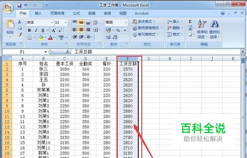 打开后,进入201412的工作表,选择工资总额这一列