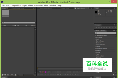 打开AE这款软件,进入AE的操作界面如图所示: