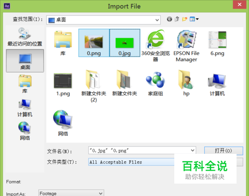 打开AE之后在project窗口内双击鼠标左键弹出import对话框,在该对话框内找到我们的图片素材,如图所示: