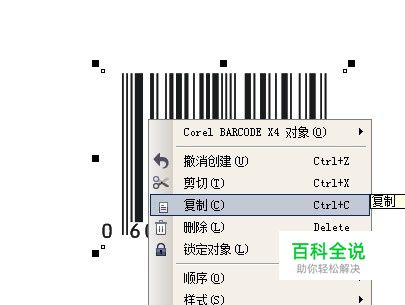 选中一个用CorelDRAW软件打开的条码,点击右链复制,也可以用快捷键Ctrl+C