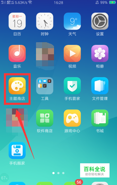 首先打开OPPO手机桌面上的“主题商店”。