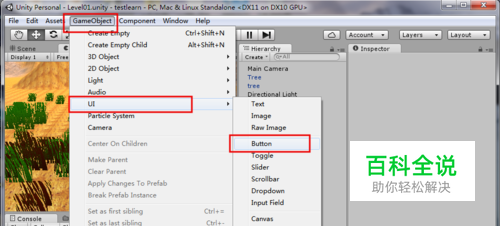打开unity3d项目“ GameObject”--“ UI”--“ Button”,创建一个按钮。