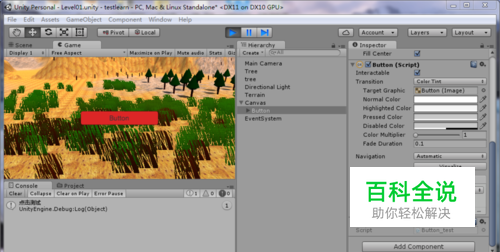 把编辑好的“ Button_test”脚本添加到场景中的Button上。
