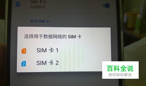第三步:进入--sim卡--(点击)移动数据(下面显示目前默认卡移动数据使用)跳出选择sim1/sim2其一,就可自如的互换了。