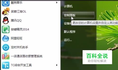 点击桌面左下角的开始按钮,然后选择控制面板。