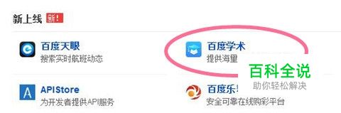 进入百度搜索栏(百度一下),在上方的栏目中选择“更多”,进入后会在“新上线”这个类别。找到“百度学术”。