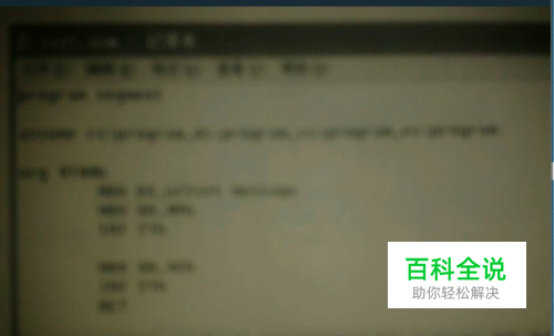 打开Windows的记事本,输入下图所示的程序,保存为test.asm,保存到工作目录D:\masm-prj.
