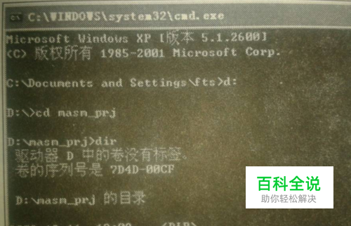 选择【开始】、【运行】命令,输入“CMD”,按Enter键打开命令提示符窗口。在其中输入“d:”,按Enter键,在输入“cd asm-prj”,接着按Enter键进入汇编工作目录D:\masm-prj.