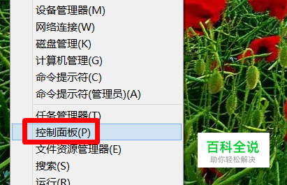 方案二:右击“Windows”图标,从弹出的右键菜单中选择“控制面板”项进入。