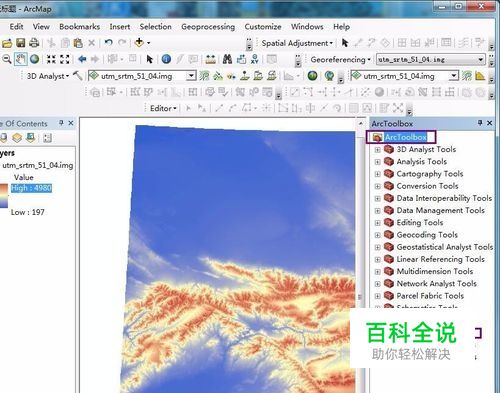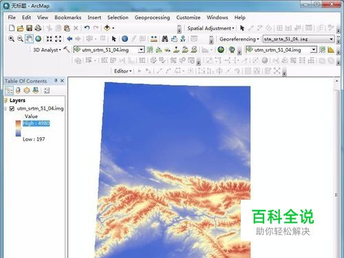打开Arcmap,添加一个dem图层,我这里添加了utm_srtm_51_04.img图层。