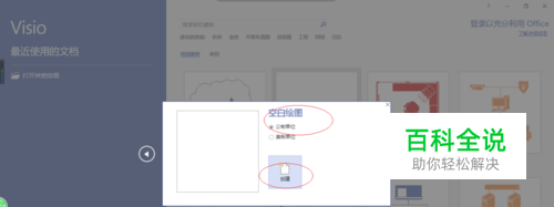 启动Visio 2016绘图软件,如图所示。选择"空白绘图"图标、勾选"公制单位"单选框,设置完成点击"创建"按钮。