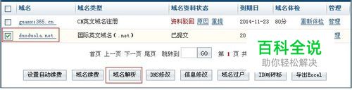 选中需要设置解析的域名并点击下边的“域名解析”