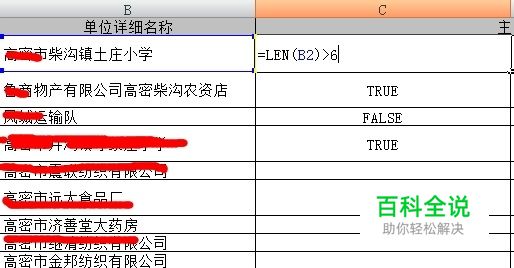 所以可以这么写:=len(B2)>6 然后往下拖。如果字符数目>6那么返回TRUE,反之返回FALSE.