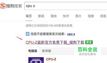 打开搜狗搜索,输入 cpu z,点击打开下载页面