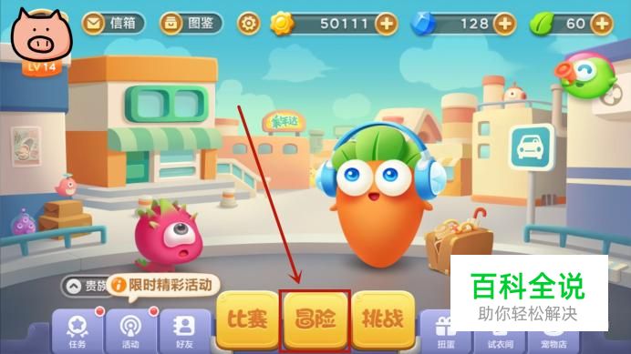 当我们进入游戏后,我们点击“冒险”,如图所示。