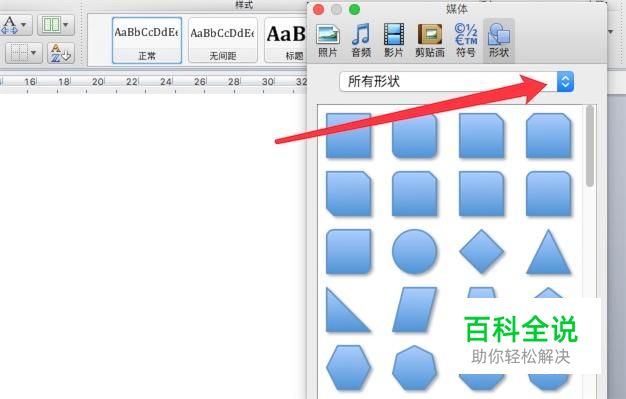 点击后,弹出了形状窗口,点击窗口上的下拉箭头
