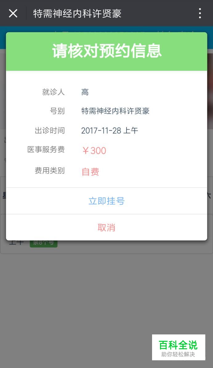 然后核对预约信息,确认信息无误后点击立即挂号。