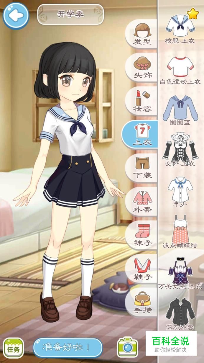 让我们开启第一关吧。每一关是会有要求提示的,也就是游戏人物小爱会说一些要求,她的话语间都会透露通关要求,玩家们要用心看哦。 如果觉得麻烦也可以先跳过,然后进入装扮界面,点击左下角的“任务”,在任务里面可以直接看任务要求,比较简略哦!