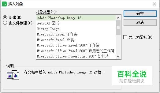 添加成功对象文件以后,在文件下方的内容框中会显示出来。勾选下方的“显示为图标”的选项。并点击“更改图标”按钮。