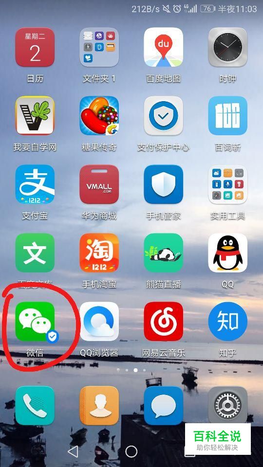 首先点击手机屏幕上的“微信”,如图所示。