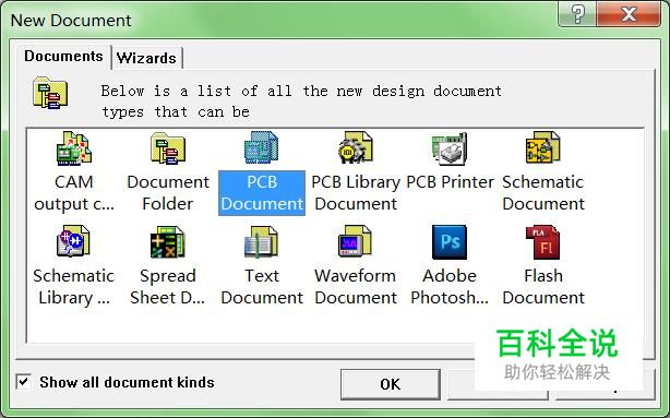 选择【Fire】/【New】命令,打开【New Document】对话框,选择【PCB Document】图标,然后单击【OK】按钮。,如下图所示。