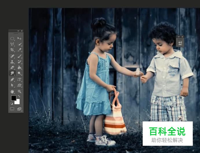 使用画笔工具,将前景颜色设为橙色为小孩的手的位置添加光点。