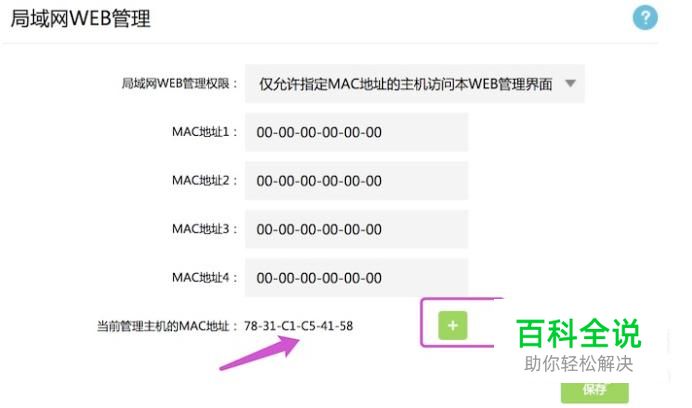 然后点击“+”按钮,把当前机器的mac地址添加上去,即只能是你现在登录的电脑能进入到路由器管理页面。