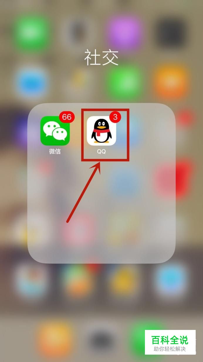 首先在手机桌面上找到“QQ”图标并点击它,如下图所示。