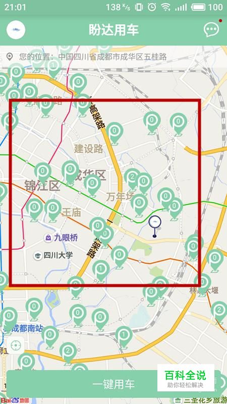 定位符号上有数字标识的代表有车可用,点选后查看网点信息,点击“一键用车”