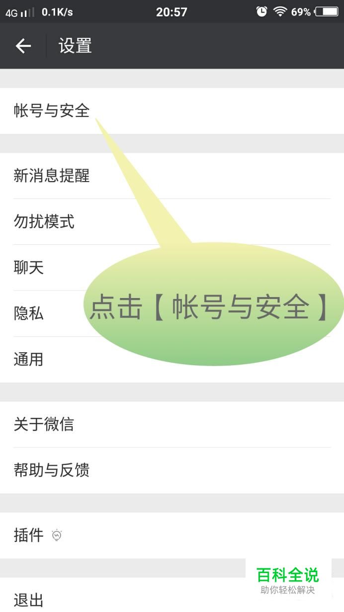 找到【帐号与安全】,并点击,如图所示