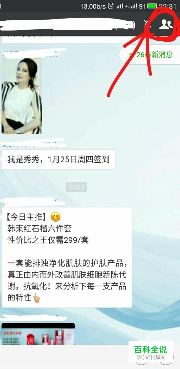 打开微信,随便找一个微信群,打开群聊的界面,如图所示,点击右上角的那个图标。