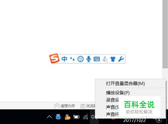 在扬声器上单击右键,选择打开音量混合器。
