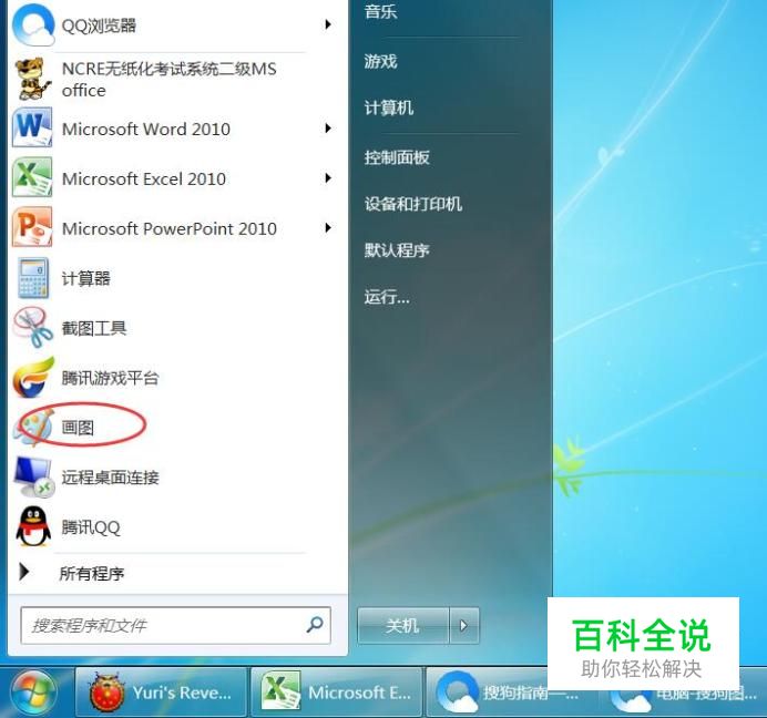 单击“开始”,选择“画图”。