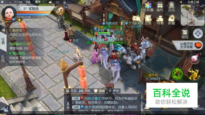 在精灵咨询界面,我们可以发送“门派闯关”来了解一下系统推荐玩法。