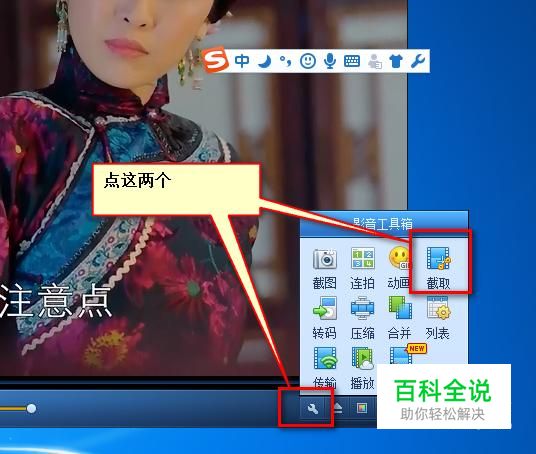 如图所示,点击图中所示的两个图标,通过它们就可以截取视频。