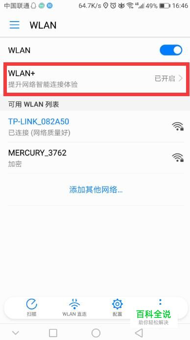 打开wlan开启wlan+功能