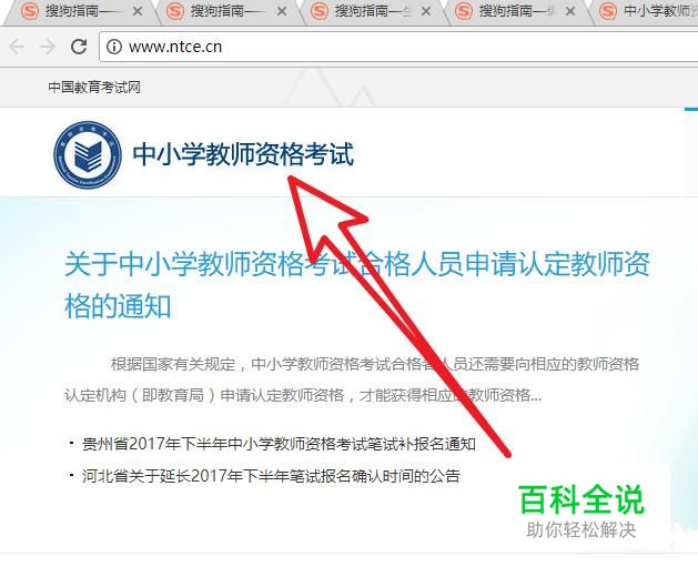 搜狗搜索中小学教师资格考试官网,进入网页。