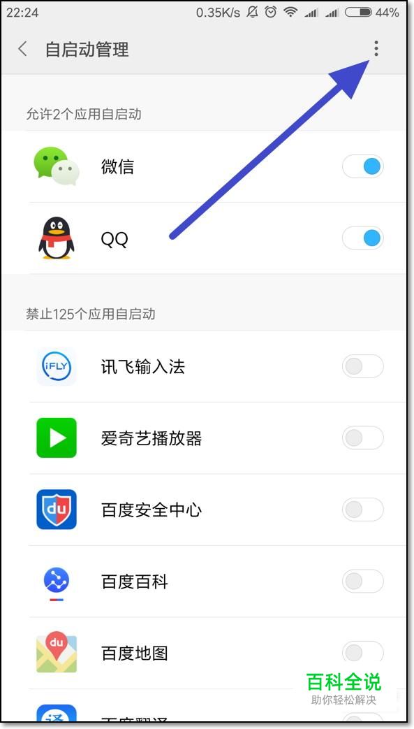 接着我们就可以看到所有在手机开机后可以自行启动的手机应用,无论是自己安装的第三方手机应用,还是手机系统自带的手机应用。