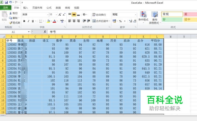 首先打开要进行排名次的表格,选中要进行排序的单元格数据,如图所示。