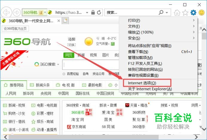 在弹出来的选项卡中找到”Internet选项“,点击进入。