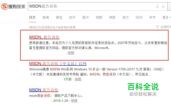 首先,请大家打开搜狗网站,搜索“MSDN我告诉你”网站,然后在搜索结果列表中,点击进入该网站。