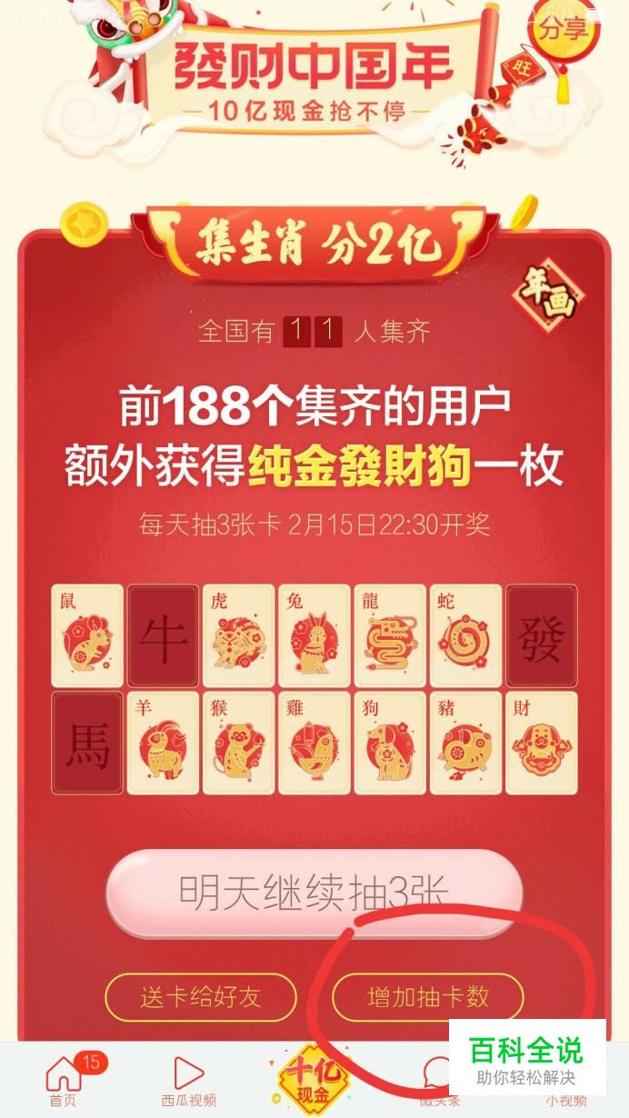 “发财中国年”的活动引爆了朋友圈,大家都开始纷纷求人收集生肖卡,如何才能增加抽卡的次数呢,我们来看一下吧。