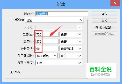 打开ps这款软件之后,我们按下快捷键Ctrl+N键,在弹出的对话框内设置参数如图所示: